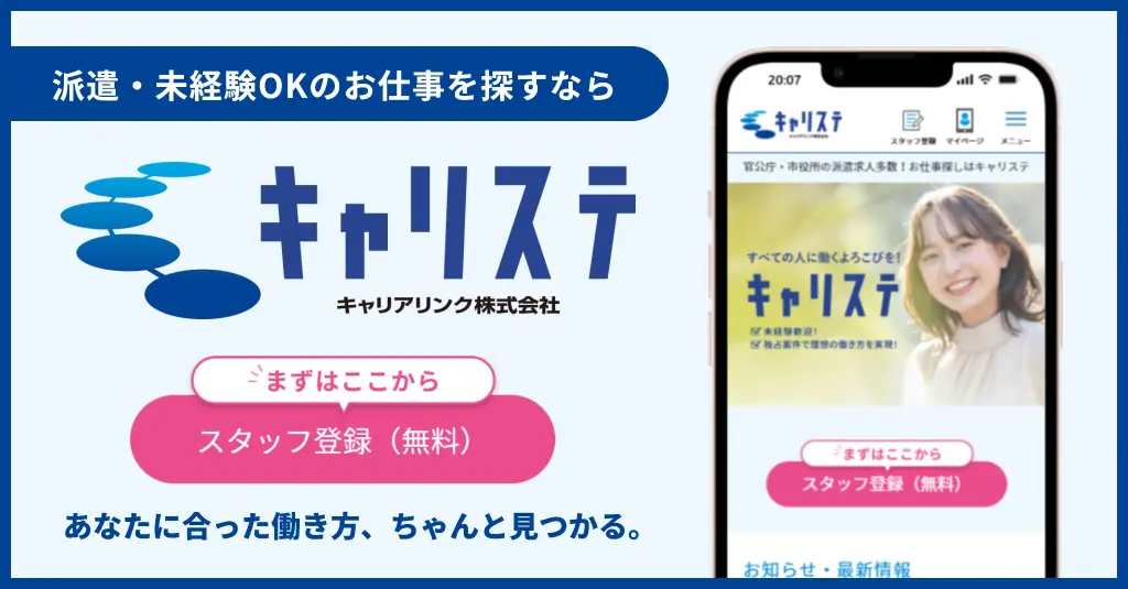 派遣の仕事検索サイト「キャリステ」には、産休・育休明けの方も働きやすい時短勤務の案件や、週3日~の案件などを多数掲載しています。キャリステを使って派遣社員として働き、現在は産休・育休を取得している方も多くいらっしゃいます。